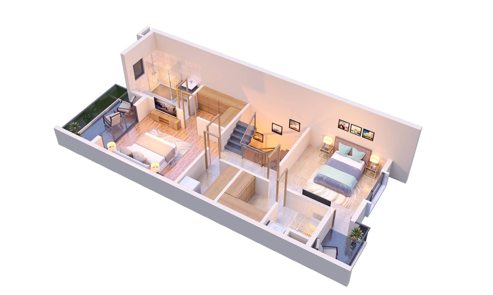 The structure is built on an RCC foundation as per the recommendations of geotechnical engineers. The doors are premium quality flush doors, and the windows are made from high-quality white UPVC.