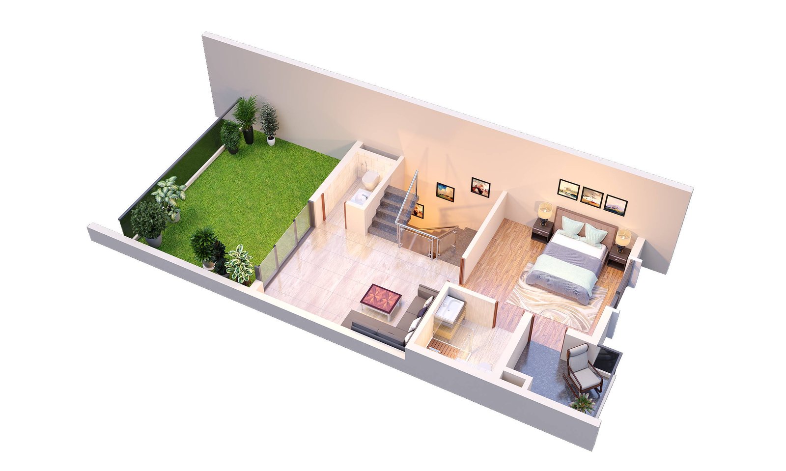 The structure is built on an RCC foundation as per the recommendations of geotechnical engineers. The doors are premium quality flush doors, and the windows are made from high-quality white UPVC.